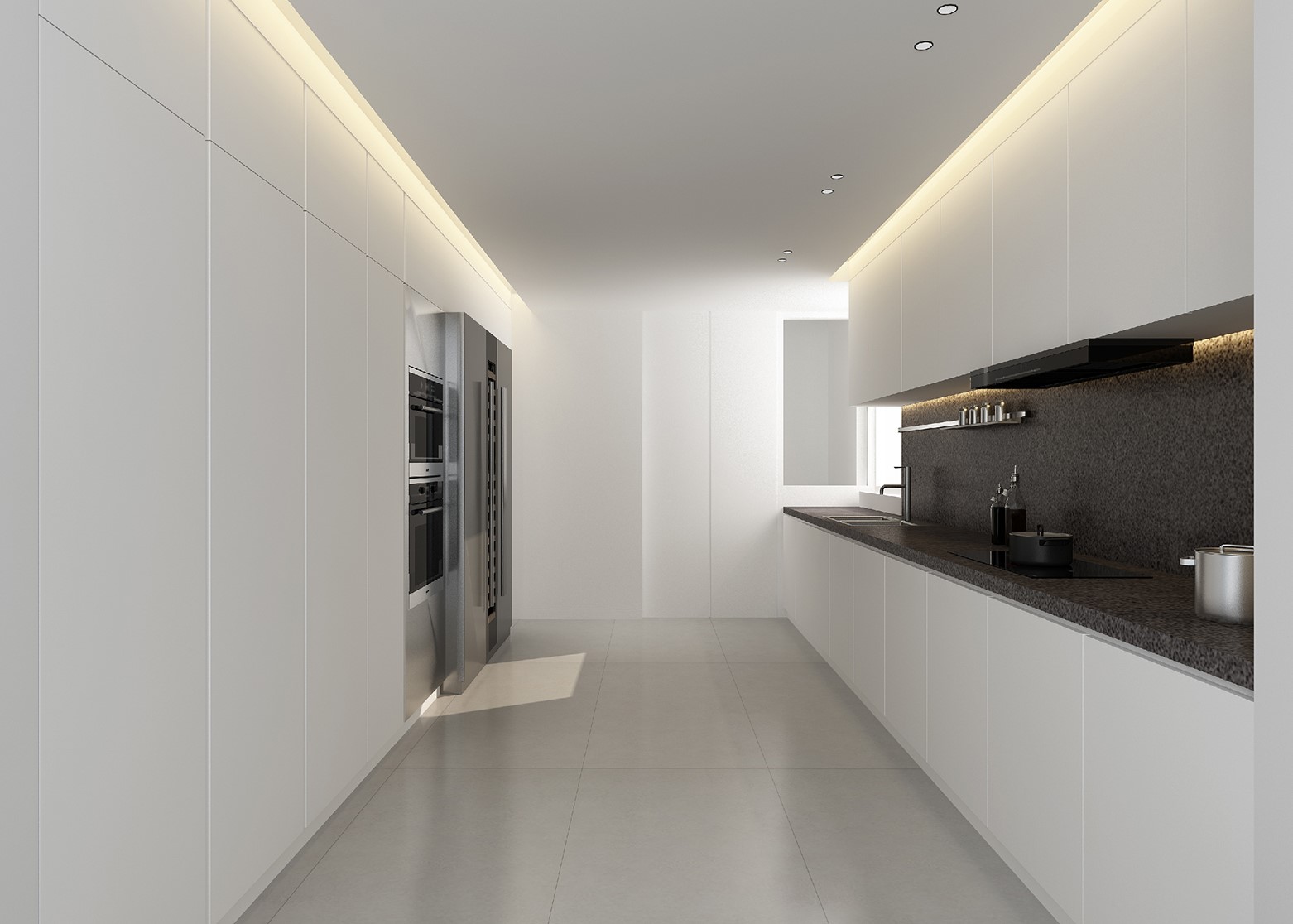 天赋海湾公寓位于香港东北海岸的一栋住宅楼的顶部,享有整个海洋的美景,并在整个规划中设有宽敞的室外露台。客户的品味完全符合我们的设计理念和风格。整个空间使用天然材料,例如木饰面,亚光石材瓷砖和用在室外泳池的黑色石材之类的天然材料,在每个空间中营造出柔和色调和简洁感。细长的阳台使每个房间都可以与朝南的室外空间直接相连。客厅将房子的西侧和东侧分开。一侧包含主卧,步入式衣橱,主卫和游泳池露台。另一侧是包括厨房,餐厅,女儿的卧室和奶奶的卧室。这两个房间在走廊尽头共用一间浴室。